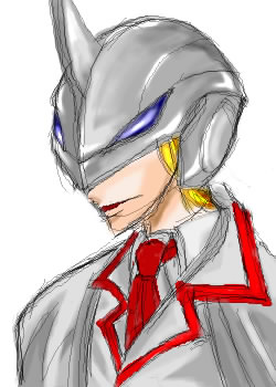 | ■外見 金髪。碧眼。白いスーツに白いマントのような金の装飾が付いたローブを羽織る。 1ラウンド目は兜のような仮面を被っており、2ラウンド前に外れ、素顔を見せる。 イメージとしては西洋の男爵(バロン)みたいな格好。 ![]() |