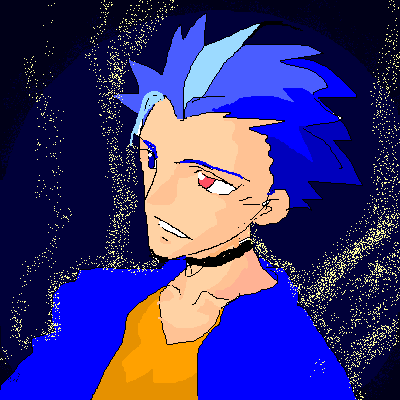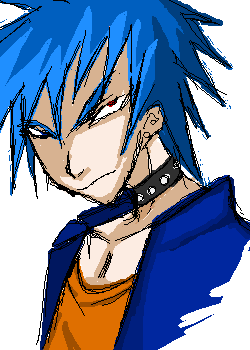 | ■外見 いわゆる美形であるが、どこの民族とも判別し難い、混血児的な顔。 肌は白く、瞳は右がダークブルー、左がクランベリーという 特徴のある色だが、普段はカラーコンタクトで隠す。 バンド活動の関係で青く染めた髪、ヘアスタイルは良く変えるのだが 今は短めに切ってつんつん立てている。 オレンジのTシャツ、青いジャケット、黒い革パン、黒いスニーカー。 首にはドッグタグ、ズボンベルトからチェーンとすっかり バンドをやってる若者風コスチューム。 ![]() |