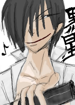 | ■外見 身長は180cm前後で黒色は黒。 耳にかぶさるくらいの長髪で前をはだけた白っぽいシャツに黒っぽいズボン。 人相は細くつり上がった目とうわづきの大きな口。 全体にあっさりとつるんとした印象。 ヘビとかトカゲとかそういったイメージ。 |