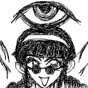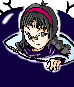 | ■外見 非常に地味な格好をしており、 袖の長い黒のロングワンピース、黒の靴。 髪の毛は黒で三つ編みに編んでおり、丸い黒縁メガネ。 手にはロッドを持っており、その先端は ヒビの入った卵にこうもりの羽が生えているモニュメントが付いてる。 ![]() |
