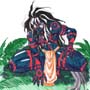 キャラ名:麻生夏香VS日向義仲 こういう動きのあるイラストはかなり好きです。 そんでもって、これはかなり良い感じに動きまくってます。 鰐さん初の水彩画だそうです。いや良いですねぇ。 |