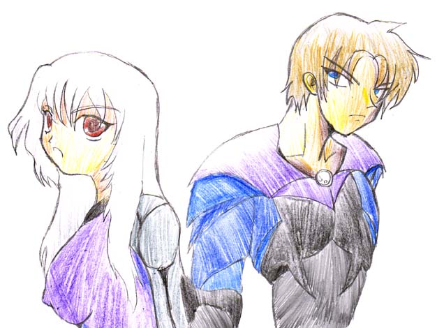 | oratorioさんより、FOWカウントキリリク タイ米さんのcode−B(右)&code−G(左) そんなこんなで、色鉛筆画像第一弾にして、 溜まりに貯まったキリリクです。 色鉛筆で肌色を出すって難しいですな(^^; (肌色エンピツがなかった) コードB&G共々、『肉体が機械の体(サイボーグ)』ということで 少々、どう描くべきか悩みました(^^; 最初に描いたコードBの場合、 体は仮面ライダーにしようかと真剣に考えていたぐらい(^^; 危うく(体だけ)島本和彦先生の『仮面ライダーZO』から模写するところでした。 結局、ファンタジーの鎧や巨大ロボットを混ぜたもの描きましたが えらく微妙なものに(−ー; 次に描いたコードGの場合は、 体はマジンガーZのダイアナンAかアフロダイAにすべきか 一瞬本気で考えたりしてみた(ヲイ) 結局、腕だけ機械っぽく描いてみました。 しかし、製作者のイメージとかなり違うだろうこと必至だなぁ(^^; ……ちったあ、絵の技量が上がっているのだろうか? |
