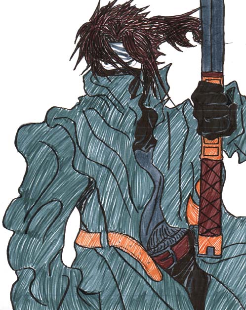 | ■衣装&外見設定 深緑の長めのコートを羽織る。頭を布で縛り後ろは結んでおり、口布で顔を覆っている。 思考を持たない物体に触れると、思念を潜入させて意識化に置いて操るという能力を身に着けたIA人種。 その能力で武器の刀を自在に操る。弱点は思念を潜入させた物体を操作中は本体の行動思念が極端に弱まる事。 |