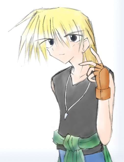 名前:彩弧 聖(さいこ ひじり) 性別:男 格闘スタイル:白虎の力+我流暗殺術 誕生日:8月14日 年齢:20歳 出身地:?(拾われたのは日本) 血液型:B 身長:178cm 体重:69kg 趣味:辻試合、食べ歩き 好きな食べ物:ピザ、ミルクコーヒー 得意スポーツ:一通りこなす 大切なもの:仲間、手甲「撃鉄」 嫌いなもの:悪、何かあるとすぐにかわい子ぶる女 苦手なもの:物静かな場所 特技:危険地帯に向かっても、必ず戻って来れる 家族構成:? 好きな音楽:ハードロック CV:山口勝平 【設定】 四神の一角、白虎の守護神。 赤ん坊の頃に日本の孤児院で拾われて育ったので、家族の事は 何も覚えていない。 15歳の時に傭兵部隊に入隊。 生まれつき持っていた白虎の力と、天賦の才とも言える体術で 若くして特攻隊長を務めている。 (しかし猪突猛進なのと、彼自身が『人の上に立つのを好まない』性格のせいで、 未だに上の位には就けていない) 本来はハイデルン部隊所属だが、今回は「Water Moon」隊長じきじきの命令で、 傭兵部隊をサポートするレジスタンス部隊「Water Moon」に配属された。 超が付くほどの熱血漢で、硬派な性格。更に、正義感も強い。 別に無鉄砲という訳ではないのだが、考えるよりも先に手が出てしまう事が多い。 彼の側にいる青年は「Water Moon」所属の剣士、ヴァスク・スレイド。 常にクールで、突っ走りがちな聖のストッパー役。 余談だが、貧乏くじを引きやすい性格でもある(笑)。 (CV:橋本潤) 【外見】 金髪・黒い瞳。髪は短髪。 上には黒の袖無しシャツ、下は黒いスパッツの上に青の短パン。 腰には迷彩色のジャケットを巻いている。 黒い靴を履いており、両手には手甲「撃鉄」を装備している。 【武器の詳細設定】 手甲「撃鉄」 幕末当時、直衛虎徹が所有していた手甲。 聖が、拾われた時から持っていた。 この事から、聖は彼女の子孫とも考えられるが……? 【キャラ特性】 攻撃力が高くスピードもあるが、防御力が少し低い。 素手なので技の出は早いが、リーチは短め。 にも関わらず……「猪突猛進」の言葉通り、積極的に攻撃を仕掛ける技が ほとんど。故にダメージを受けやすい。 しかし……一部の技には硬体術の性能があるので、 上手く使えば、かなり役立つ。 【スタート演出】 (※画面外から蹴りを繰り出しつつ、所定位置に着地) 「へへっ……(微笑しつつ、その場から立ち上がり) 早速、おっ始めようぜ!(構えを取る)」 【スタート演出・特殊】 (vs水無瀬遥) 聖&ヴァスク「(服装・姿勢を正し、敬礼)」 遥「(敬礼を返す)」 ルーシェ「けいれ〜いっ♪(遥と同様のタイミングで敬礼を返す)」 (vsアスタル)《※一方的な掛け合い》 (※アスタルに背を向けた状態。小声で) 「あ〜、その、何だ……あ、あの時は悪かったな(前方に向き直る)」 (vsイグニス)《※一方的な掛け合い》 (※イグニスを指さし) 「出やがったな、ネスツの親玉!」 【弾かれダメージ】 「うあっ!?」 【1回目敗北】 「まだまだ……勝負はこれからなんだよ!」 【2回目敗北】 「ちっくしょお〜!」 【奥義系敗北】 「チッ……しくじったぜ……」 【時間切れ敗北・ドロー】 聖「んだよコラ! 延長戦を要求……」 ヴァスク「……するな(剣の柄で、聖の後頭部を小突く)」 聖「あだっ! Σ(><)」 【挑発】 「……おっと、まさか怖気づいたのか?」 【1回目勝利】 (※後方に宙返りした後、セリフと同時に拳を突き上げる) 「Year!」 【2回目勝利(剣質「力」)】 「これにて、任務完了!」 (※プレイヤーの方を向いて敬礼した後、大ジャンプして画面外へ退場) 【2回目勝利(剣質「技」or「極」)】 (※白虎の力で水晶の虎を造り出す) 「なかなか楽しめたぜ!(言いつつ、水晶の虎に飛び乗る) じゃあな、あ〜ばよっ!(聖を乗せた水晶の虎が大ジャンプし、画面外へ退場)」 【2回目勝利・特殊】 (水無瀬遥) 聖&ヴァスク「引き続き……任務を続行します!(敬礼)」 (アスタル) 聖「う……恨まないでくれよなぁー!(アスタルに背を向けて全力疾走) ……ぶっ!(画面端に激突して、その場に倒れる)」 ヴァスク「(仰向けに倒れた聖を見下ろしつつ) ……アホかお前は(--;」 (イグニス) 聖「(カメラを取り出して) こいつが負けたトコを撮った写真って……アイツ、喜ぶかな……?」 ヴァスク「(剣を背中の鞘に収めつつ)……取り敢えず撮っておけ」 (「ヒジリ・クラッシュ」フィニッシュ時) 聖「(黒焦げ状態のままで、その場から立ち上がり) 見たか! これが『死地からの生還』ってヤツだ!! Σd(>▽<)」 ヴァスク「……それは単なる自爆だ(--;」 (「ミラージュ・キル」フィニッシュ時) 聖「おしっ!(ガッツポーズ)」 ヴァスク「任務……(剣を下ろす)」 聖&ヴァスク『完了!(互いの拳を交差させる)』 【勝利画面・通常】 「ここが戦場じゃなくて良かったな。 もしここが戦場だったら、この程度じゃすまないぜ、ホントに」 「何をするにも、真っ向から攻め込んだ方がいいんだよ! 余計な事考えてっと、それが攻め方にも出ちまうからな!!」 「俺はこう見えても軍人なんだよ! そこら辺のガキ共と一緒にしても
